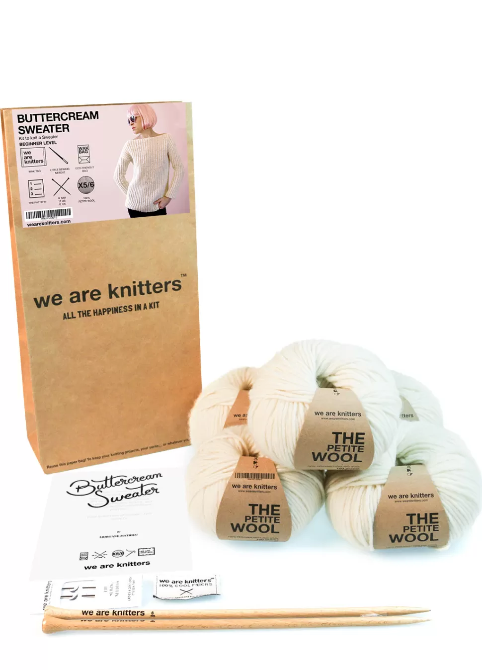 We love Buttercream Sweater! Overcome your fear and fulfill your potential, let’s knit this beginner knitting kit. Flat knitted, our Buttercream Sweater can be yours in just a few hours. Wear this timeless cozy sweater half-tucked into denim.