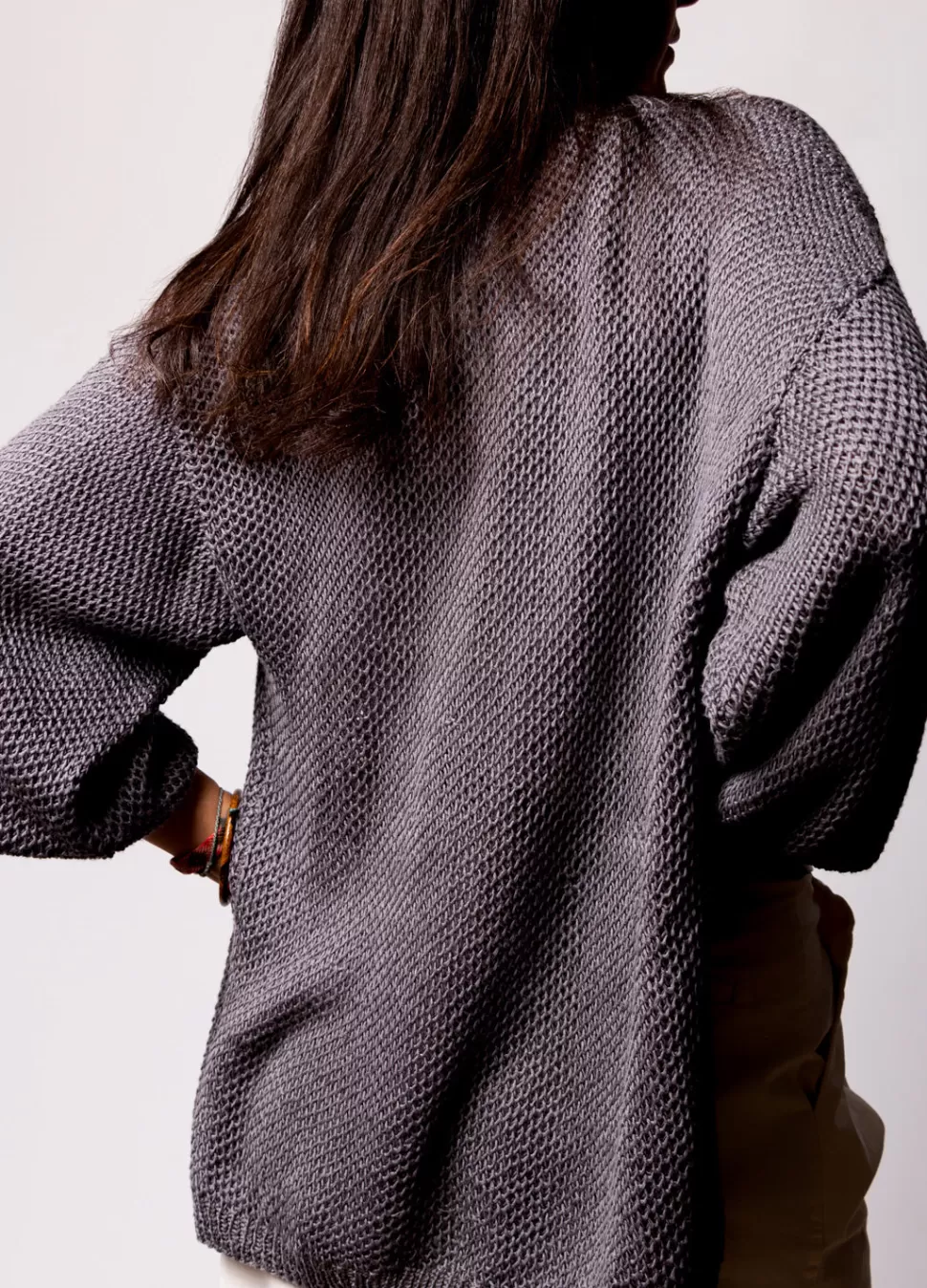 Our Sasa Cardigan is an easy kit. Left open at the front, it’s designed in a relaxed fit with bishop sleeves. Wear yours with a tank and a cool pair of jeans.