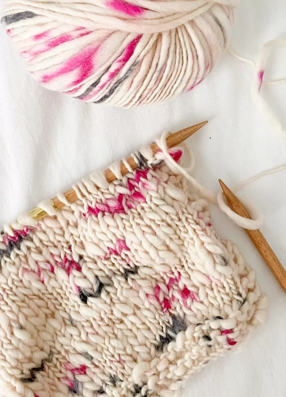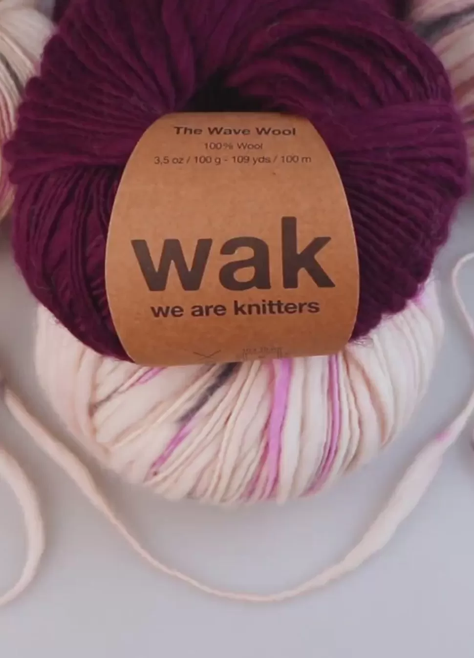 The Wave wool is extremely soft and easy to knit with. Thanks to its peculiar spinning you’ll be able to achieve different thickness throughout the same skein and be able to knit some very unique pieces. Sounds fun!