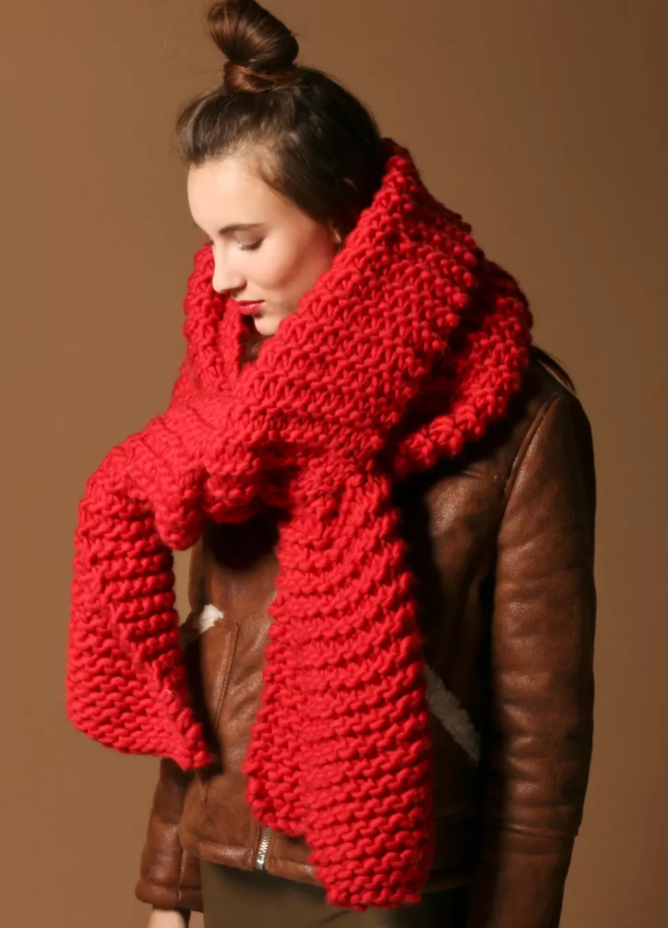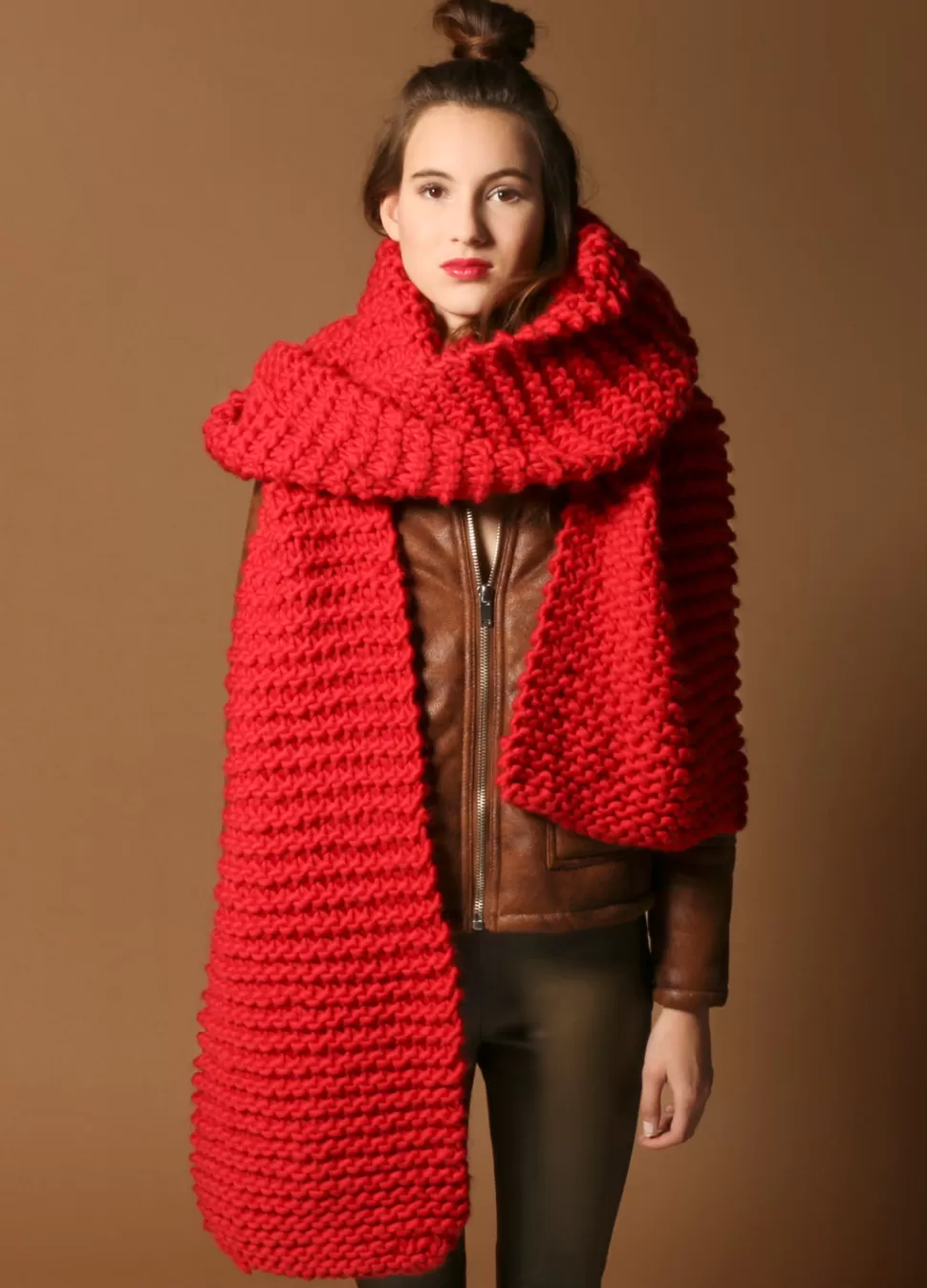 This Unique Scarf is perfect for beginners because it’s knit with our chunkiest wool and 15mm needles. It’s very rewardi…